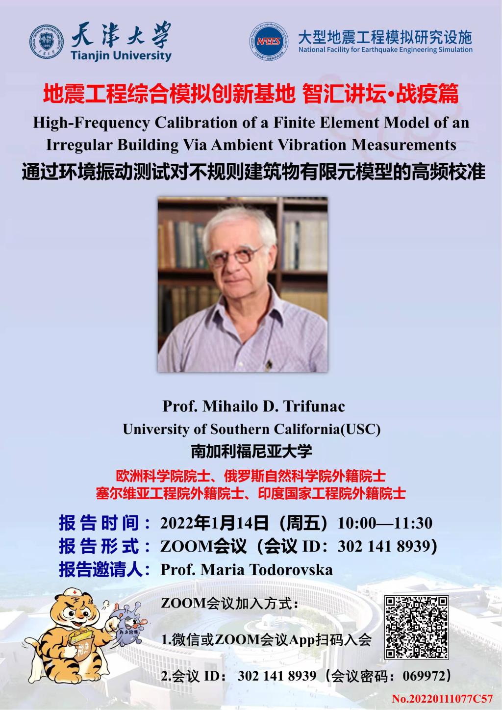 2022年1月14日上午10:00—11:30,欧洲科九游 、俄罗斯自然科九游 、塞尔维亚工程院、印度国家工程院四院院士、美国南加州大学 Mihailo D. Trifunac教授将通过“云端”为大家带来关于“High-Frequency Calibration of a Finite Element Model of an Irregular Building Via Ambient Vibration Measurements/通过环境振动测试对不规则建筑物有限元模型的高频校准”方面的讲座和交流,具体时间和安排请您查阅海报,诚邀各位老师和同学参加。