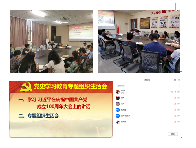 与会党员集体学习了习近平总书记在庆祝中国共产党成立100周年大会上的重要讲话,并围绕“学史明理、学史增信、学史崇德、学史力行”的要求逐一发言,结合自身党史学习和教学科研工作,讲收获提高,讲差距不足,开展批评和自我批评,进行了一次深入的交流和学习。