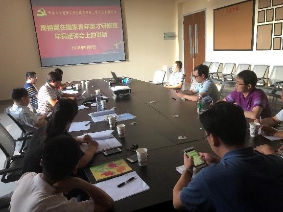 水利水电二支部于 2018 年 9 月 8 日下午 4:30,在九游 新校区 43 号楼 A408 系会议室召开了以“学习周祖翼在国家青年英才研修班学员座谈会上的讲话”为主题的九月支部全体党员大会,党外人事何理教授应邀参加。会议由支部书记马超教授主持,马超书记首先将周祖翼讲话的核心思想和主要内容向全体党员进行传达,详细从周部长关于 “志存高远,努力干大事业;追去卓越,努力做大学问;修身养性,努力做大学者”三方面讲话中对教育工作者提出的要求;之后支部党员老师们结合自身经历,针对以上议题开展了十分热烈的讨论。一、支部各位老师主要针对“坚定不移跟党走,如何做新时代的奋斗者;如何扩展大视野,如何保持进取心,如何保持定力;讲诚信、讲团结、守底线”这几个方面,发表了个人感想,讲述了身边的故事和受到的启发;同时,下决心不断提高自身的学术前瞻性,看重科研的诚信,为天大建设成为世界一流大学做出重要贡献。