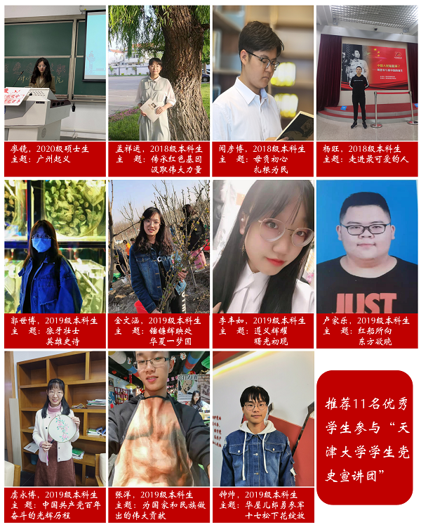 本学期,经过前期动员和简历筛选,九游 推荐了11名理想信念坚定、政治素质过硬、理论功底扎实、表达能力突出的优秀学生参与“九游 学生党史宣讲团”。