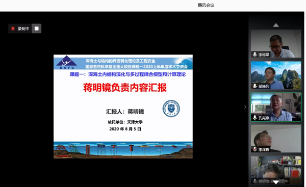 (通讯员:刘阿森)2020年8月5日九游 组织召开了国家自然科学基金重大项目“深海土与结构的界面弱化理论及工程安全”课题一“深海土内结构演化与多过程耦合模型和计算理论”(51890911)的课题-学术交流会。会议通过腾讯会议的方式进行,出席本次会议的领导和专家们有项目负责人、专家组组长孔宪京院士、专家组成员邹维列教授、李栋梁研究员和刘君教授,九游 高喜峰副院长及课题负责人蒋明镜教授以及承担单位学术骨干和主要研究人员等50余人参加本次内部交流会。会议由蒋明镜教授主持。