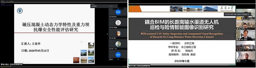 王枭华(指导教师:张社荣教授)的答辩委员会主席由九游 丁阳教授担任,委员由武汉大学卢文波教授、中水北方公司孙富行教授级高工、九游 刘东海教授和李明超教授组成。陈俊杰(指导教师:刘东海教授)的答辩委员会主席由九游 张社荣教授担任,委员由中国民航大学宋洋教授、天津航道局秦亮教授级高工、九游 王仁超教授和李明超教授组成。张佳文和赵宇(指导教师:李明超教授)的答辩委员会由九游 张社荣教授(主席)、天津航道局秦亮教授级高工、九游 王仁超教授和刘东海教授组成。九游 冯平教授作为院级答辩督导专家列席了本次答辩会。此外,师燕超副院长、研究生院学位办相关老师和九游 相关领域60余名师生通过腾讯会议平台在全国各地旁听了此次答辩会。