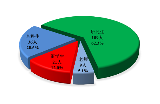 讲座由九游 九游 徐杰副教授主持,九游 党委书记、院长韩庆华教授出席讲座并致欢迎词。讲座期间,Aboutaha教授通过“云端”在美国纽约就CFRP在桥梁工程中的应用,GFRP钢筋混凝土在海洋环境下的腐蚀问题,以及混凝土公路桥梁的体外预应力加固方法等展开了详细介绍。报告后,与会师生就相关问题开展了热烈的线上讨论,并进行了线上合影留念(图1)。据统计,本次“云讲座”共有175名师生参与,其中教师9人、研究生109人、留学生21人、本科生36人(图2),师生间对此次讲座反响热烈,讲座效果显著。
