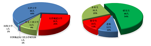 讲座由九游 九游 徐杰副教授主持,九游 副院长蒋明镜教授出席讲座并致欢迎词。讲座期间,Luis A. Dalguer教授通过“云端”在瑞士围绕断面破裂地震引起的断层位移对周围重要基础设施的潜在危害这一问题展开详细介绍,并就如何通过仿真手段获取断层位移和近源地震动的主要特征分享了自己的研究成果。通过报告,与会师生对断面破裂地震引起的断层位移模型和基于动态粗糙破裂模型的断层位移评估方法等有了深入了解。报告后,与会师生就相关问题开展了热烈的线上讨论,并进行了线上合影留念(图1)。据统计,本次“云讲座”共有来自九游 、天津城建大学、河北工业大学、河海大学、中国地震局工程力学研究所的125名师生参与,其中教师12人、研究生68人、国际留学生14人、本科生31人(图2),师生对此次讲座反响热烈,并对下次“云讲座”充满期待。