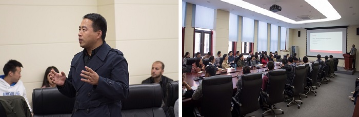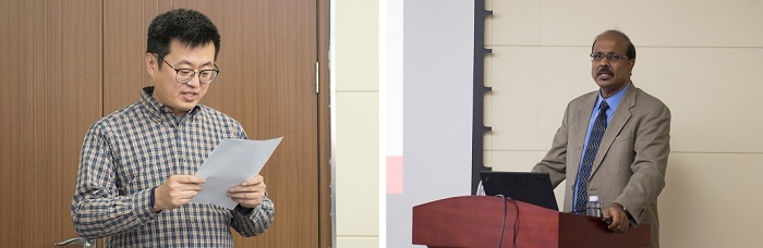 图1严加宝副教授主持会议 | 图2 Sri Sritharan教授作报告 |