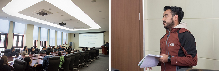 左图为徐杰副教授主持会议,右图为Rajesh Dhakal教授作报告。