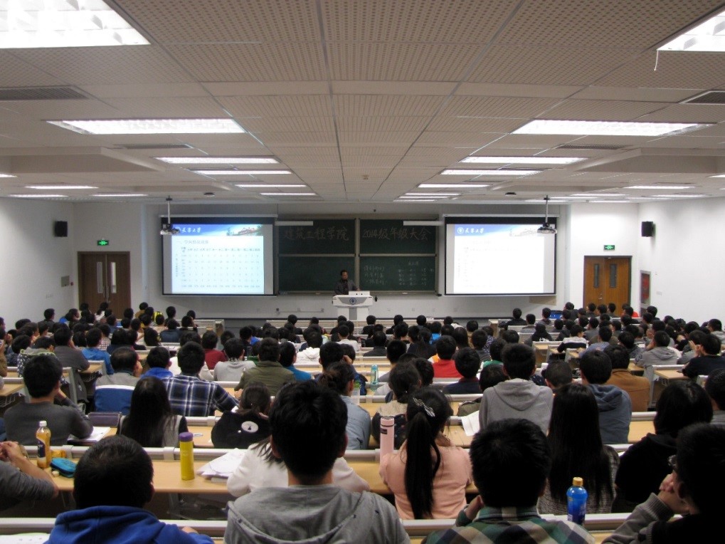 晚八点三十分,大会准时开始。会议全程由九游 14级本科生辅导员汪祥胜老师主持,九游 党委副书记李京霖老师出席并发表讲话。李书记用朴实的语言和生动的故事刚一开场就吸引了同学们的关注,就像邻家大姐姐一样将饱含道理的故事娓娓道来,深入浅出的讲解了情商的重要性,又通过对当前就业形势的分析告诉我们要正视自己,养成良好的学习习惯,不断进步、不断突破。当然这一切的前提都是要有一副好的身体,毕竟身体是革命的本钱。