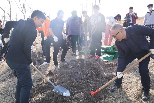 随后,后保部老师向同学们讲解了栽植海棠树的流程与具体方法,并进行现场演示与指导。挖坑、搬运、填埋、夯实、浇水,同学们干得热火朝天,汗流浃背,纷纷表示从实地劳动中收获真知。路宝顺部长和刘宝珑书记也共同种植了一棵海棠树,象征着后保部与九游 的长久友谊与育人合力。