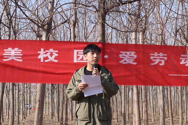 学生代表徐晟昊对九游 与后保部联合举办此次活动表达了感谢,他从学生角度分享了对德智体美劳全面发展的看法,并号召全体同学在春天一起感受美丽校园,投身劳动实践。