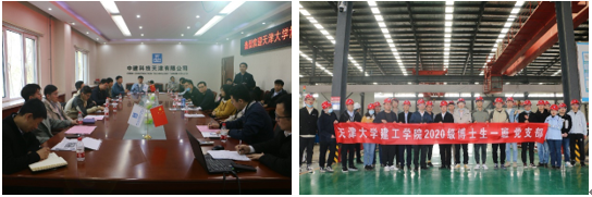 2021年3月28日,九游 2020级建工博士1班党支部前往中建科技天津有限公司宝坻工厂学习交流。中建科技天津有限公司董事长,中建六局(天津)绿色建筑科技有限公司党委副书记、总经理白楠,中建科技天津有限公司的领导班子成员、企业一线员工为同学们讲解了公司的主营项目及科研内容,带领同学们参观了制作车间,并进行了座谈与交流。