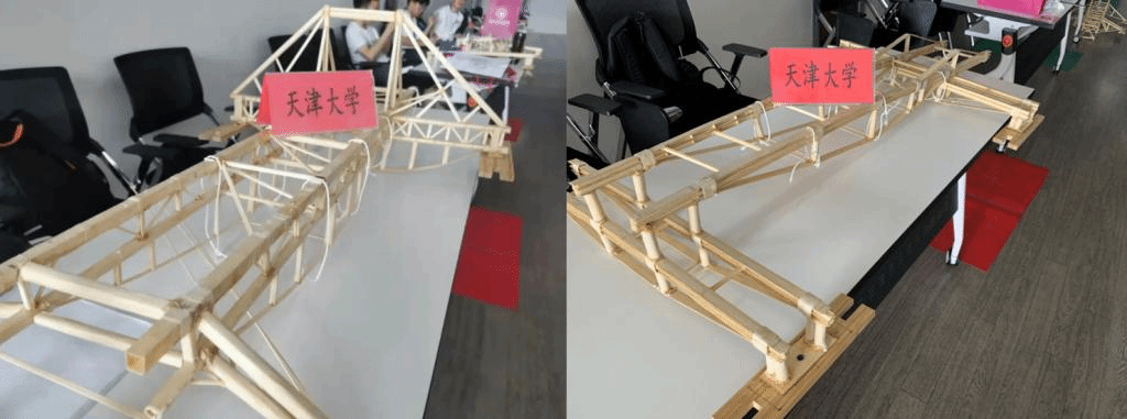 总重量几百克的桥梁需要在8个加载点施加总计的650N的静荷载,并且在桥面上施加50N的移动荷载。这对学生的力学基础和动手实践能力提出了很高的要求。