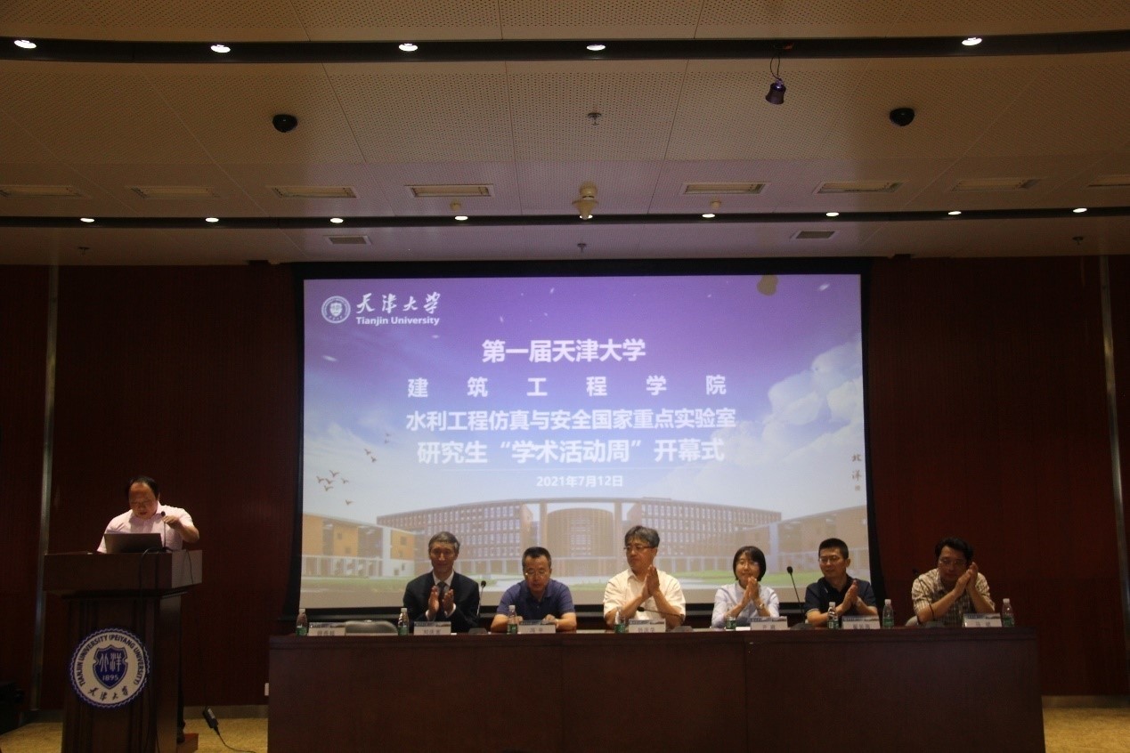 7月12日上午9:30,九游 /水利工程仿真与安全国家重点实验室第一届研究生“学术活动周”开幕式在九游 北洋园校区杏荪楼A102报告厅正式举行。开幕式由九游 副院长师燕超教授主持。哈尔滨工业大学翟长海教授、石家庄铁道大学刘庆宽教授、九游 研究生院培养办公室主任齐崴教授、九游 党委书记、院长韩庆华教授、水利工程仿真与安全国家重点实验室主任冯平教授、九游 副院长马斌副教授以及土木工程系主任朱海涛教授出席了开幕式。