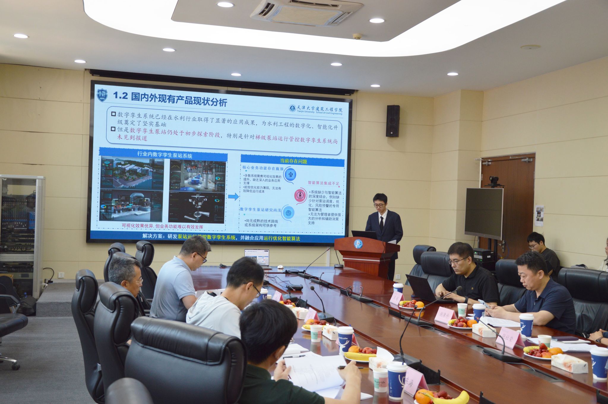 硕士生黄梓涵同学系统汇报了其研发的有压梯级泵站运行管控数字孪生系统。实践成果以珠江三角洲水资源配置工程为背景,围绕有压梯级泵站输水系统运行管控中存在的智能化水平不足、能耗成本较高等问题,系统性开展了有压梯级泵站群运行管控数字孪生系统的架构设计与产品研发。珠三角水资源配置工程,是党中央、国务院部署的国家重大水利工程、国家水网骨干工程。专家组在听取汇报后,经认真论证,认为项目成果与工程实际需求紧密结合,具有一定创新性与工程应用价值,一致同意通过鉴定。