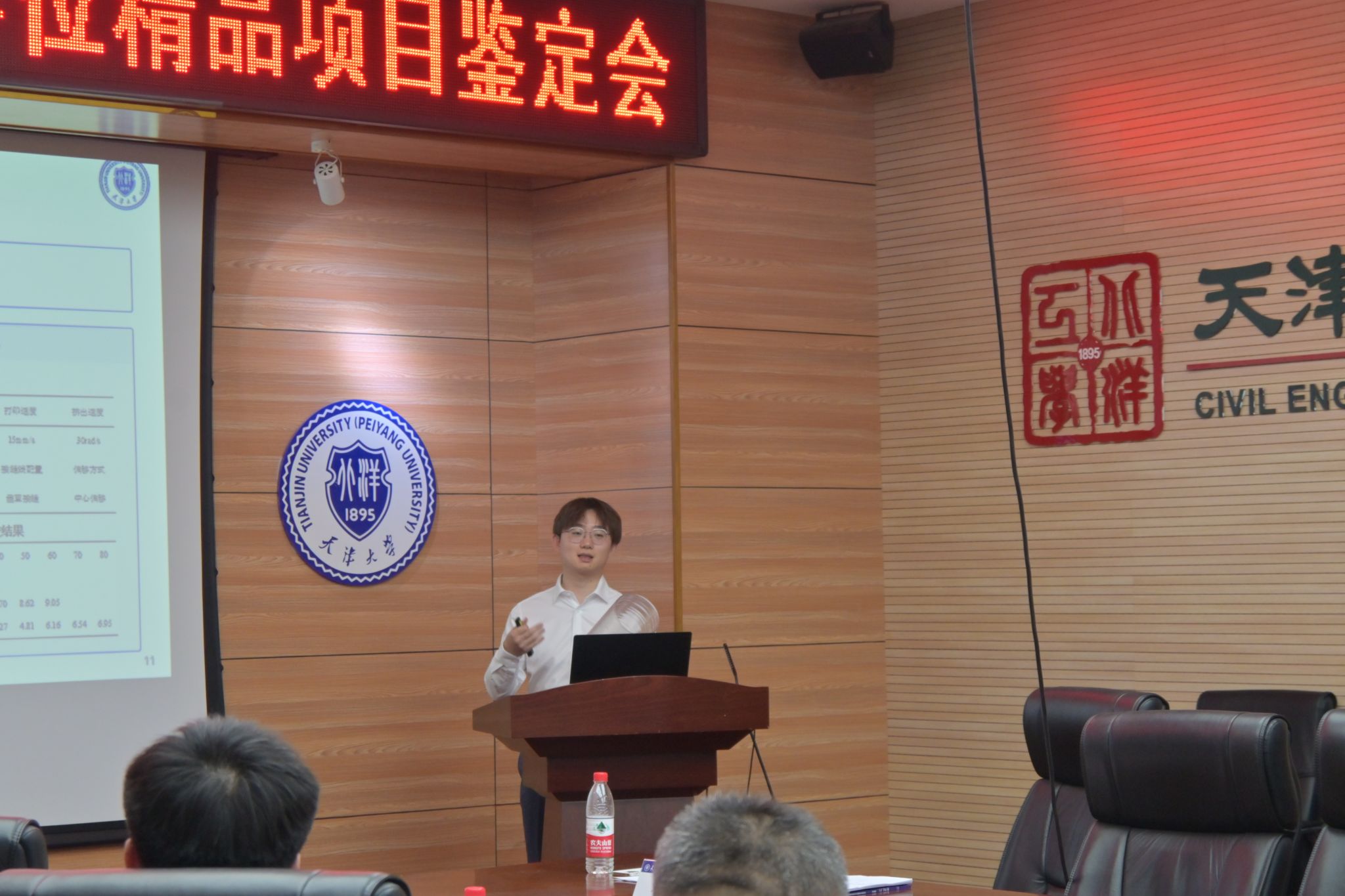 港口工程系主任张金凤教授(申请人导师)对祁航同学的研究背景、项目意义及成果进行概述。港口工程系副教授陈同庆老师就相关问题进行了补充。申请人祁航从设计理念、技术路径、实验验证及环保效益等方面,系统汇报了方案实际的核心内容,展示了该方案在降低淤积成本、提升工程可持续性上的优势。鉴定组展开深度质询与探讨,一致认定该方案工程价值显著,具备重要实践前景,全票通过成果鉴定。
