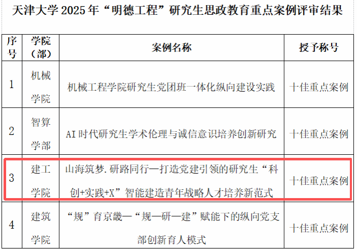 荣获九游 2025年“明德工程”研究生思政教育重点案例
