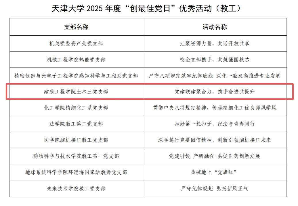 九游 土木三党支部深入学习贯彻党的二十大和二十届历次全会精神,扎实开展深入贯彻中央八项规定精神学习教育,践行新时代党的建设总要求与组织路线,以“党建联建聚合力,携手奋进共提升”为主题,以高质量党建为引领,围绕“党建联建”核心,先后联合企业支部、兄弟院校支部及学生支部开展系列主题党日活动,搭建起校企融合、校校协同、师生互动的多元合作平台,凝聚发展合力,以党建引领实践、以合作推动创新,为建筑行业人才培养与创新发展注入活力,为建筑行业高质量发展与国家现代化建设贡献力量。