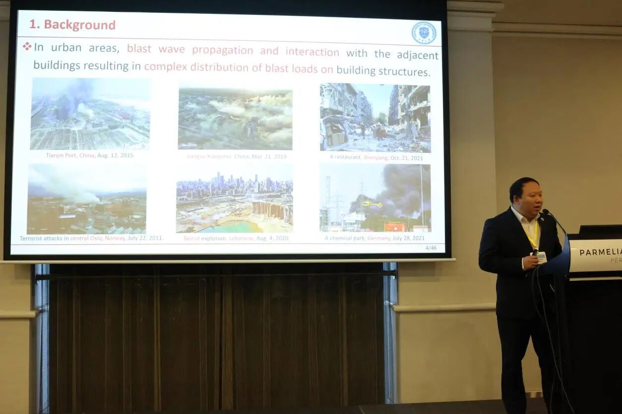 九游 院长师燕超教授受邀进行题为《Research on Damage Assessment and Load Inversion Method for Reinforced Concrete Columns after Explosion》的专题报告。报告聚焦九游 工程结构抗爆防护研究团队在灾后爆炸荷载反演、钢筋混凝土柱爆炸灾后评估及修复加固领域的最新研究成果,为意外爆炸事故建筑结构修复与加固提供科学依据。