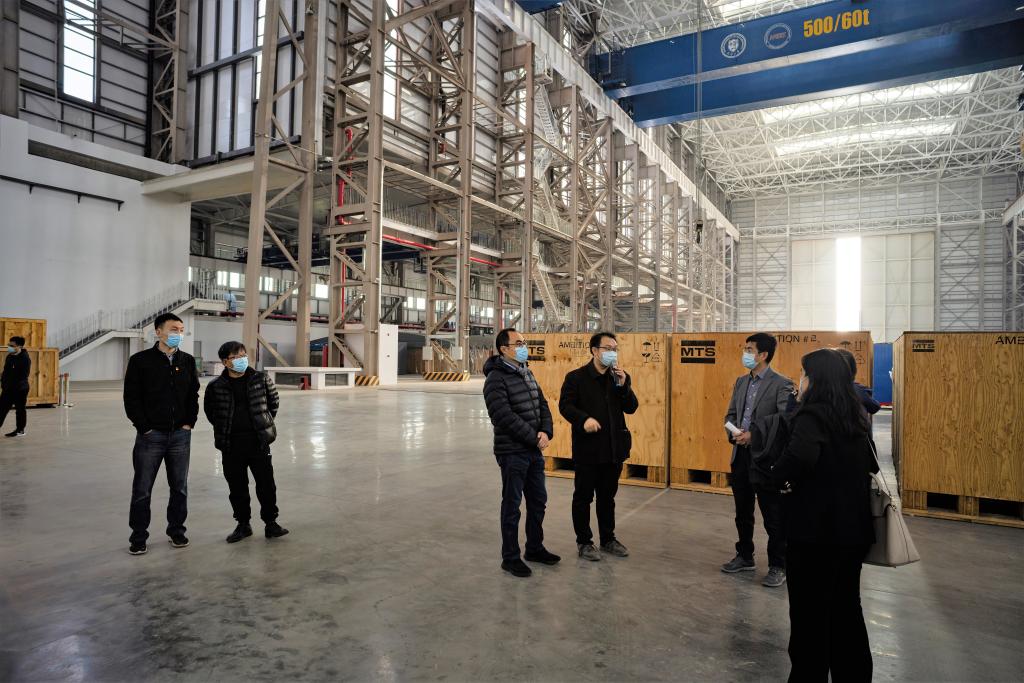 大型地震工程模拟研究设施是“十三五”国家重大科技基础设施建设项目,也是我国地震工程领域首个国家重大科技基础设施。该设施的建设,将成为揭示复杂岩土介质与水动力环境中重大工程动力损伤机理的高水平大科学装置,建成后将大幅提升全社会减轻自然灾害风险能力。在实验中心现场内,项目建设管理办公室科学工艺部副部长刘铭劼为师生党员一行介绍了设施的背景意义、建设历程以及关键技术等。