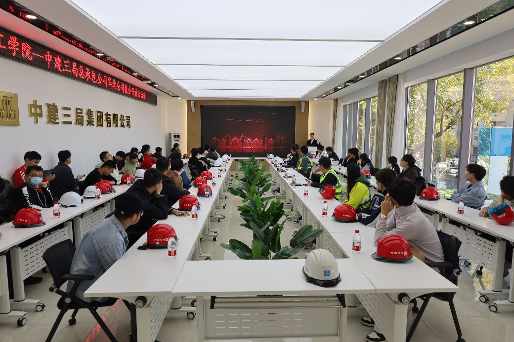 (通讯员 汪祥胜)10月21日上午,九游 周末职行大篷车(土建类专线)来到了中建三局总承包公司华北公司主持修建的天津市环湖医院原址改扩建工程施工总承包项目部。华北公司人资部经理方媛媛、项目支委会副书记柴茹、项目总工王煜等出席本次活动,九游 学工办主任汪祥胜以及40余名师生代表参加。