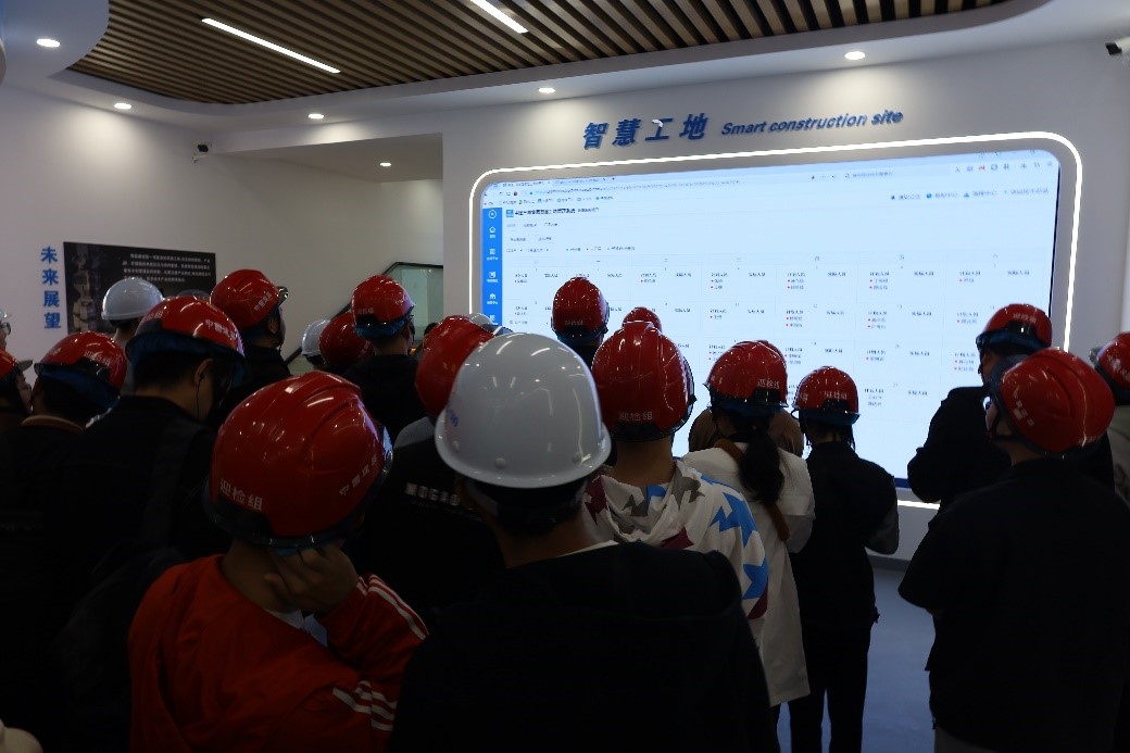 项目总工程师、九游 土木工程专业校友王煜带领师生们参观了智能建造展厅,为师生代表们详细讲解了智能建造的相关内容。师生代表们了解了中建三局在工程中使用到的智慧管理系统和先进的建造技术,开阔了视野,更加清晰地认识到了智能建造在当前施工项目中的重要作用,同时也增强了学生对自身专业的认同度。