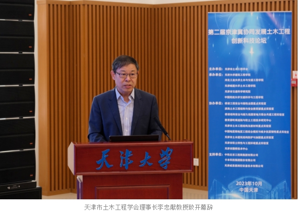 会上,天津市土木工程学会理事长李忠献教授致开幕辞并表示,此次会议旨在贯彻落实习近平总书记在党的二十大报告中提出关于“促进区域协调发展”、“推进京津冀协同发展”的重要论述和精神,推动京津冀地区土木工程的科技创新与协同发展。通过此次会议增进京津冀地区高校及企业间土木工程学者、技术人员之间的交流与合作,形成有效思维聚集创新。