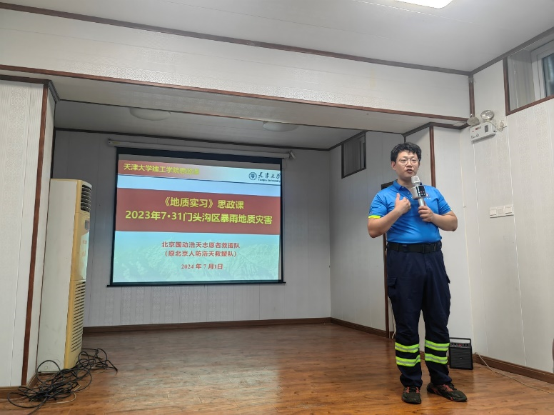 (通讯员:吴帮标)7月1日,正值建党103周年之际,北京国动浩天志愿者救援队受“地质实习”课程带队教师邀请,为正在北京门头沟进行实习的水利水电工程专业学生,呈上了一节有关门头沟暴雨地质灾害的精彩思政课。