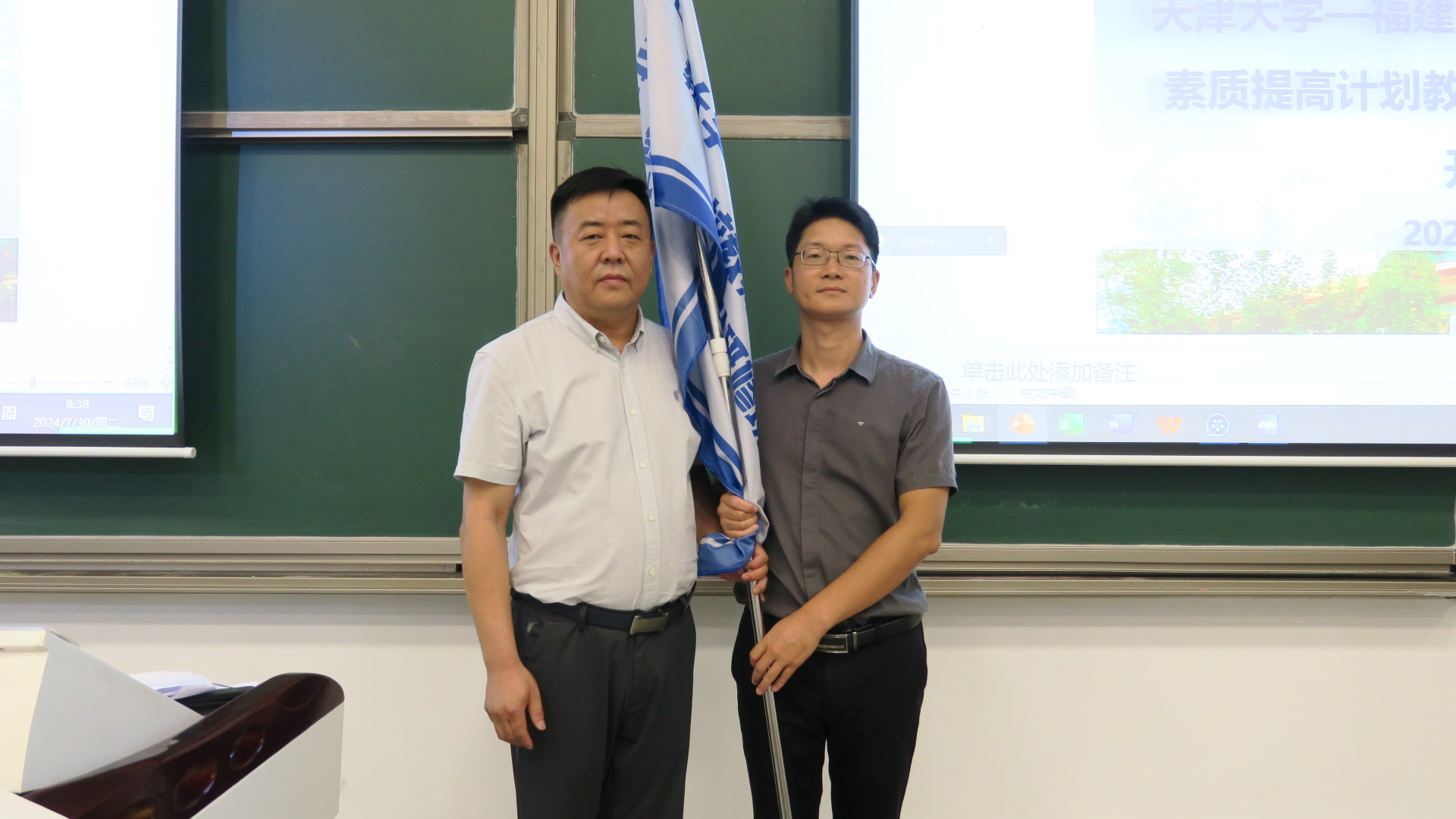 最后,白杰为研修班授予班旗,学员代表福建省龙岩华侨职业中专九游 朱育平接旗。