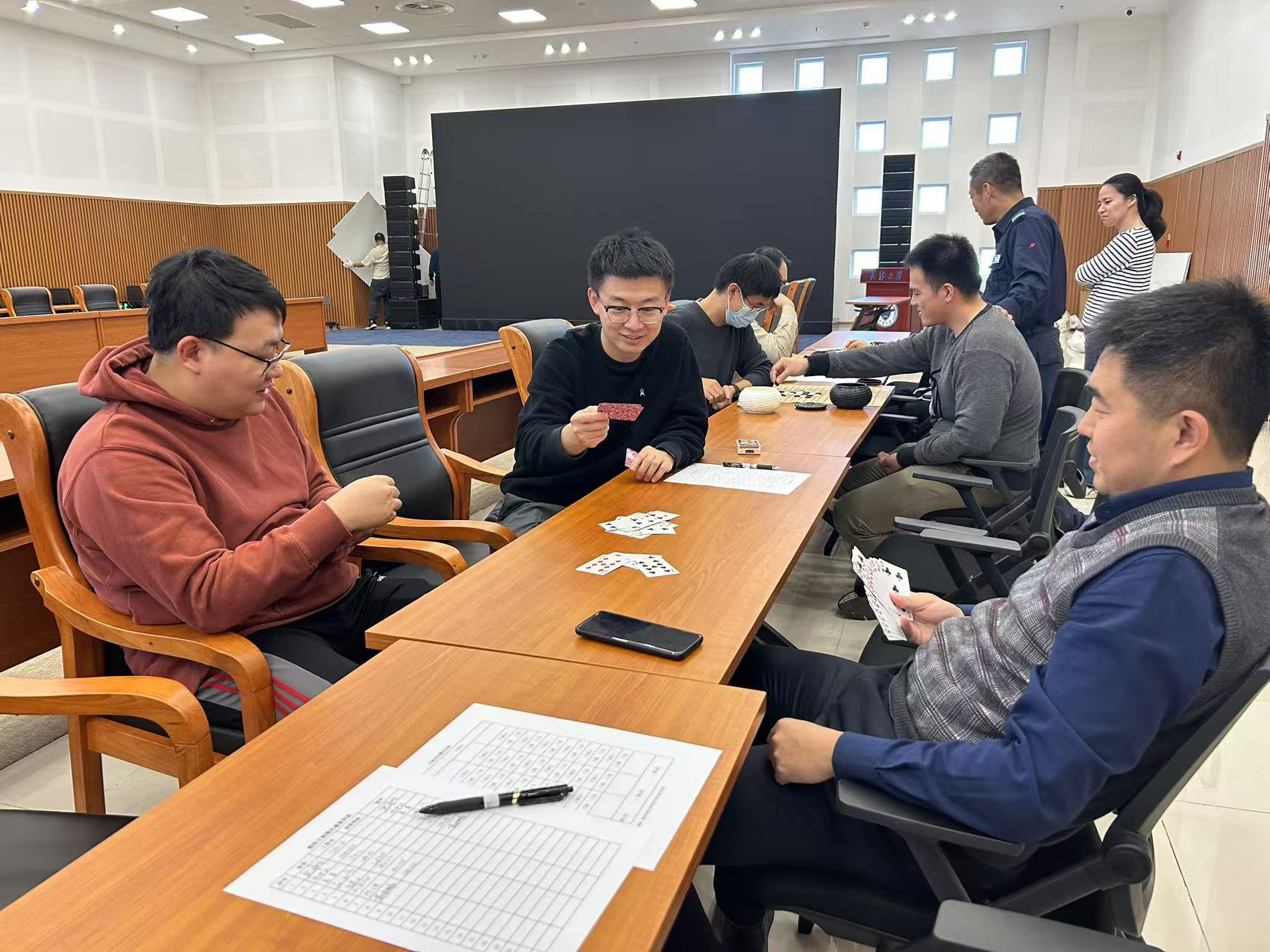 活动当天,参赛的教职工们个个精神饱满,热情高涨。在斗地主和掼蛋的比赛中,大家斗智斗勇,时而眉头紧锁,时而开怀大笑,展现了高超的牌技和默契的团队精神。五子棋和跳棋的比赛中,大家凝神思考,果断落子,棋盘上,棋子交织,仿佛在无声地诉说着对弈双方的智慧碰撞。
