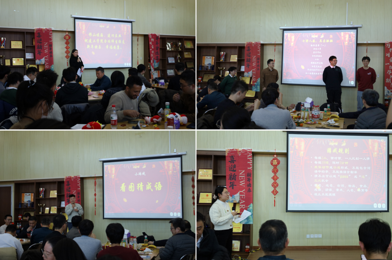 在节目之余,联欢会还穿插了多个有趣的小游戏,七拼八凑、看图猜成语、你比我猜等。这些游戏不仅考验了参与者的反应能力和团队协作精神,也让现场观众笑声不断。老师们积极参与,台上台下互动频繁,气氛十分热烈。游戏互动过程中,九游 领导为全体教职工送上新年的祝福。老师们脸上洋溢着幸福的笑容,现场充满了浓浓的节日氛围。